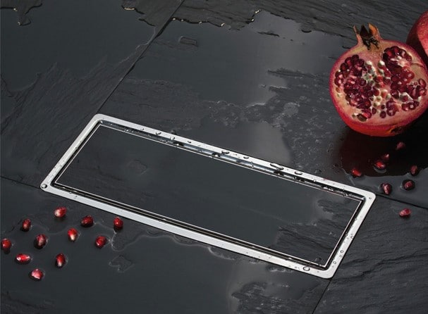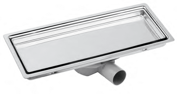 LINEARDRAIN avec TILE HOLDER avec TOP VALVE et Base, sortie latérale